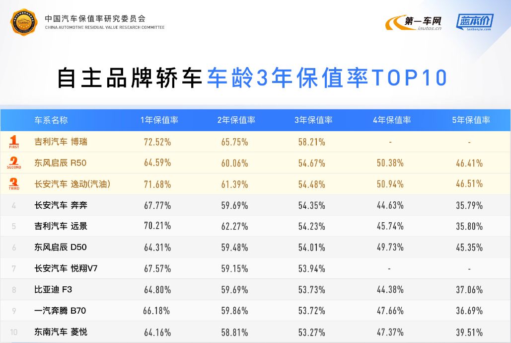 中国最保值车型排行榜