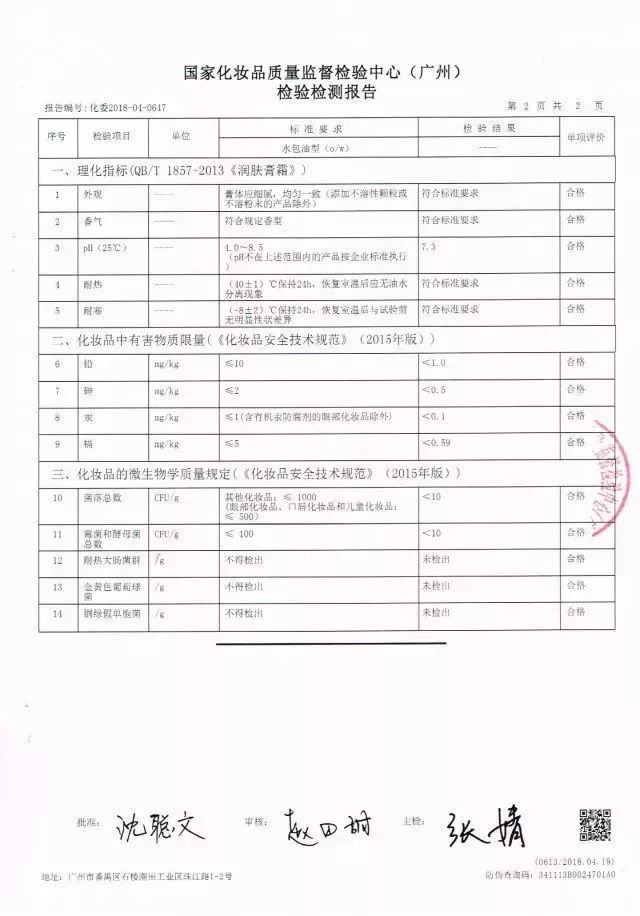 检测报告结果,完全符合《润肤乳液》《化妆品安全技术规范》等国家标准要求,可以直接涂抹于皮肤上,放心使用。