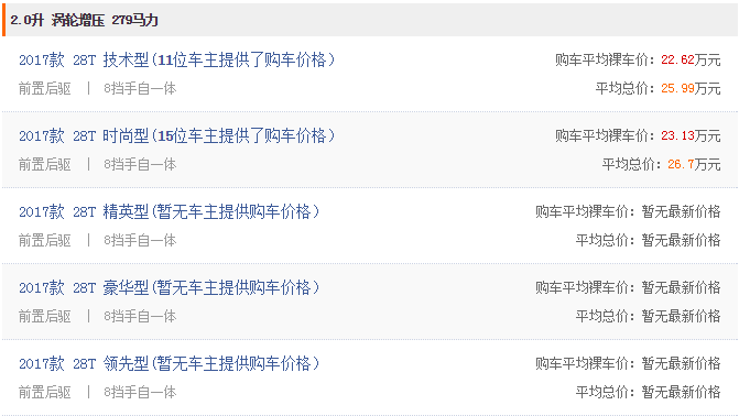 新车指导价:27.69-34.09万