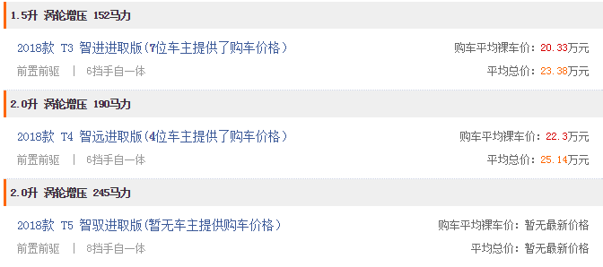 动力方面,新车将继续搭载1.5T和2.0T两款发动机,其中1.5T发动机(T3车型)最大功率152马力,2.0T发动机最大功率为190马力(T4车型)和245马力(T5车型),传动系统匹配的是6速手自一体(T3/T4车型)或8速手自一体变速箱(T5车型)。