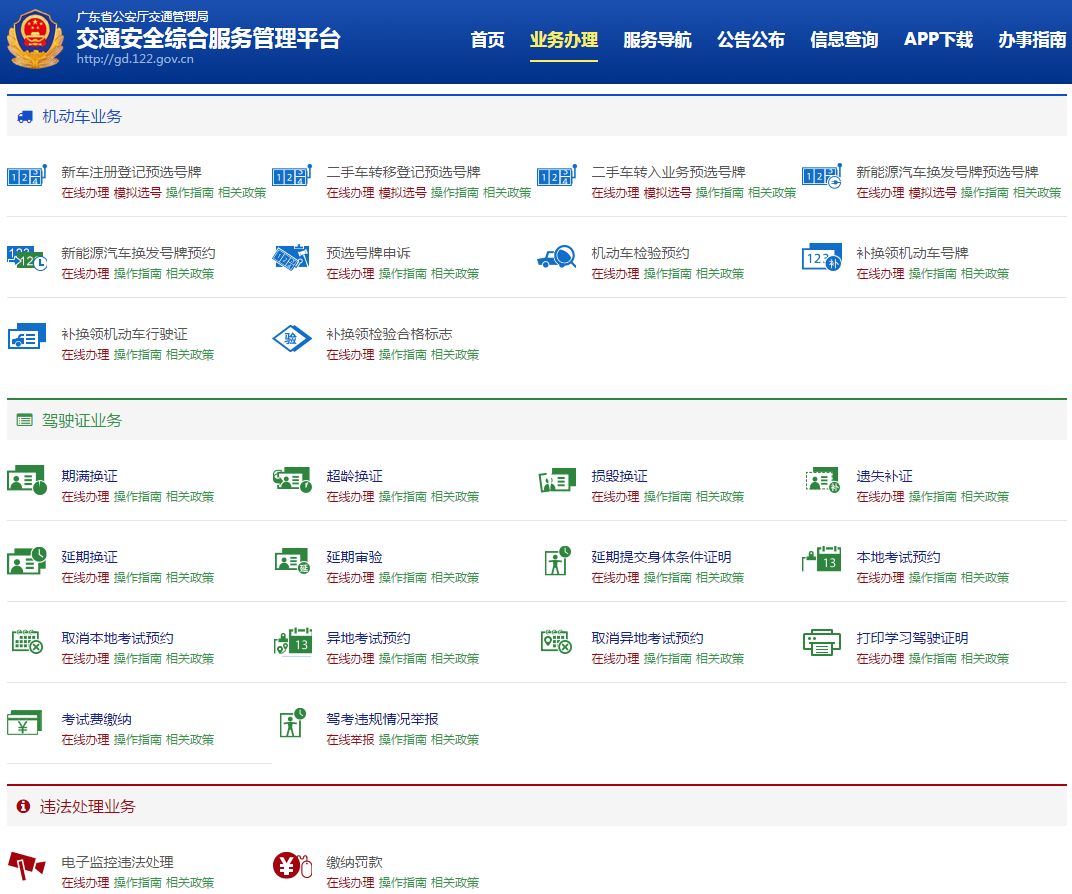 交管服务网上办理。按照“应上尽上、全程在线”的要求,实行驾驶人考试预约、机动车选号、补换领驾驶证、申领免检标志等交管业务网上办理。