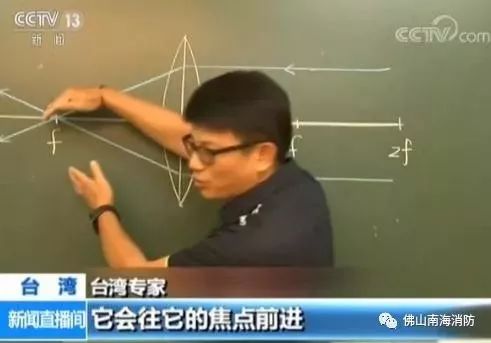 台湾专家:平行光打过聚光透镜的时候,它会往它的焦点前进,所以说,它所有的光源热量会集中在这一点。