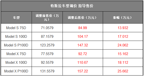 国内对美国整车进口关税于7月6日12:01开始,正式由15%调整至40%。我们从特斯拉官网获悉,其目前在国内的车型售价随之调整,涉及Model S和Model X两款车型,综合涨幅在13.932-25.662万元之间,详情请见下表: