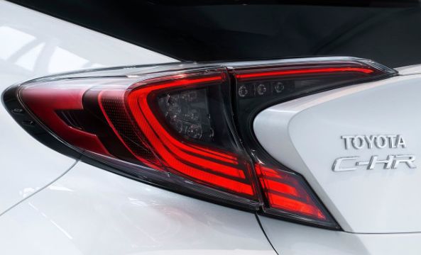 尾部设计方面,丰田C-HR尾部采用悬浮式缕空尾翼设计,还配备了鲨鱼鳍天线,尾灯采用双C型设计,并采用熏黑设计,增加了运动感。采用多边形双色轮毂设计,规格为215/60 R17。
