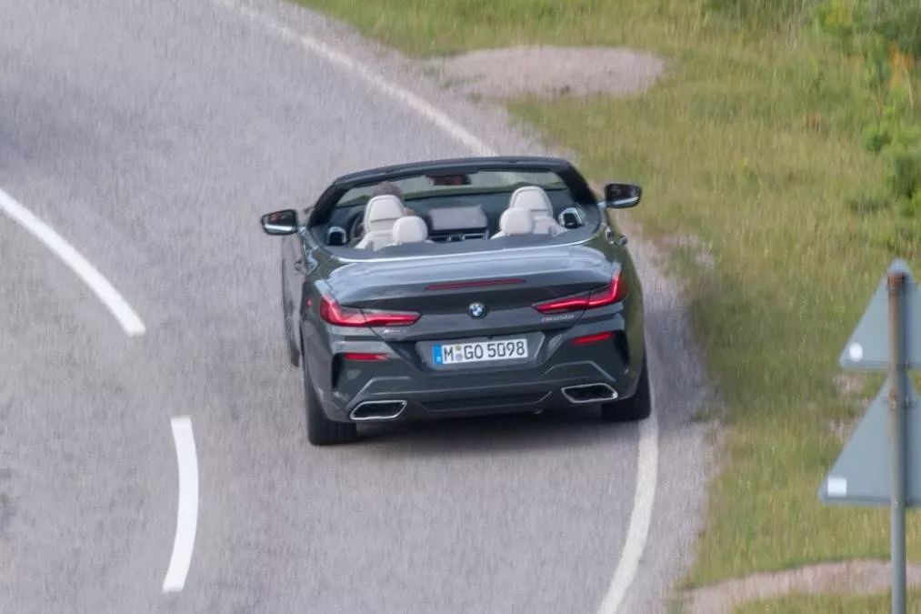 外观方面,8系四门敞篷版与双门轿跑版的最大区别在车尾部分,因8系敞篷版需要考虑到可折叠车顶的收纳环节,所以车顶与车尾连接的线条并不会像双门轿跑版那般顺滑。