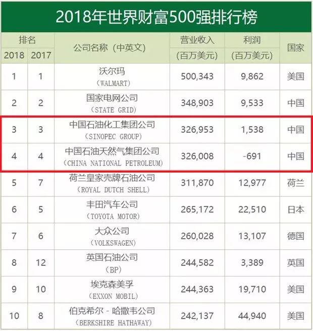 世界500强出炉,“两桶油”行业前二,6家中国车企上榜