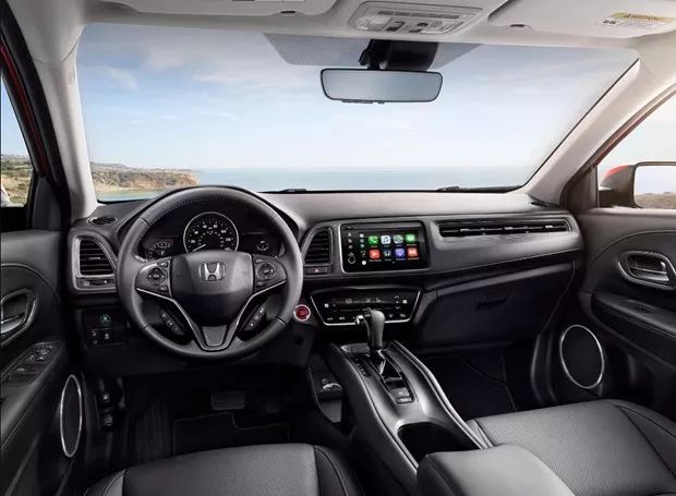 内饰部分,新款HR-V整体设计相比现款变化不大,采用三辐式多功能方向盘,匹配重新设计的仪表盘,中控台配备界面更加简洁的音频娱乐系统,支持Apple CarPlay和Android Auto,EX及以上版本采用4.2英寸TFT彩色显示屏幕。此外,新车挡把部分的设计与现款区别明显,看上去更加简洁明了。