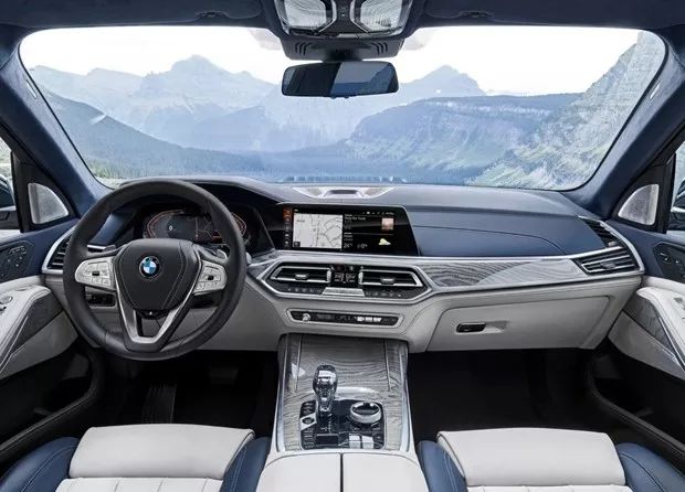 宝马X7将会提供6座和7座两个版本,座椅布局分别为2+2+2、2+3+2,其中6座布局第二排座椅可选装类似头等舱的豪华座椅。此外,新车还搭载了三段式天窗,其中第三排上方为独立式设计。后备厢门开启方式与X5相同,为上下分段式开启。
