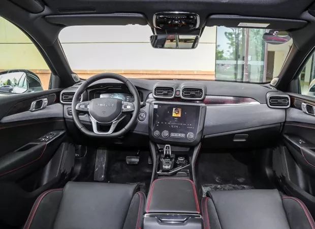内饰方面,领克03的中控台造型和功能布局上与01和02保持一致,中控台采用朝向驾驶员的造型设计,方向盘为三幅式方向盘,空调出风口开关为推拉式设计, 10.2英寸中控触屏同样不会缺席。中控区金属拉丝面板上还采用了蜂窝状花纹,突显了年轻和运动的定位。