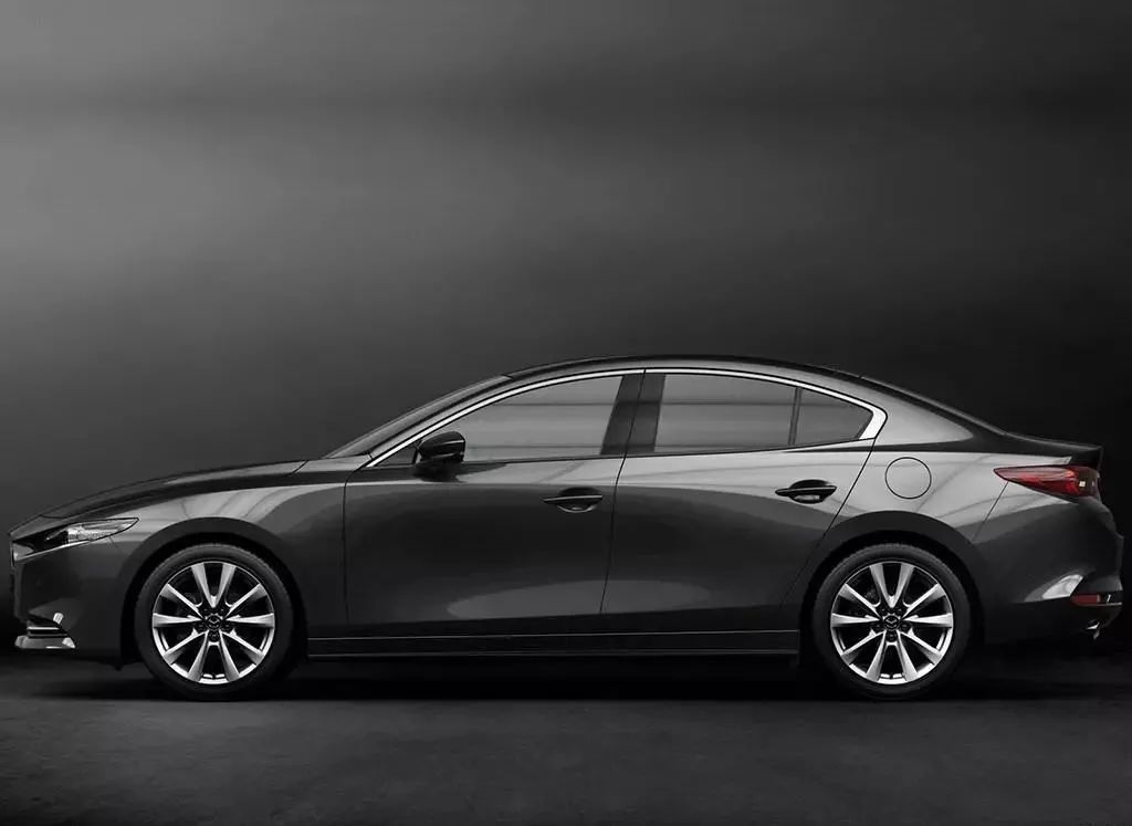 全新一代马自达3的侧面造型同样富有动感,车身侧面并没有采用过于突出的腰线,车侧整体显得较为平滑。其中两厢车后门的车窗相对较短,显得运动感十足,而三厢车型的侧面造型则更加顺滑。