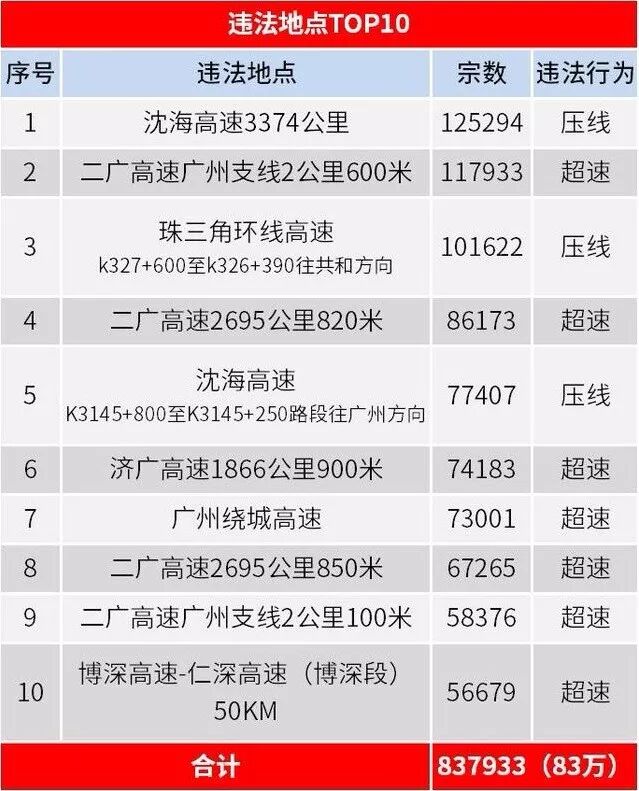 而据统计,去年电白服务的摄像头就拍到125294单违章,罚款超过2500万。成为广东全省10大违法路段之冠。并且,抓拍的违章案例基本都为压实线,按照处罚标准,车主压实线进入服务区就会被处于记3分罚款200元。