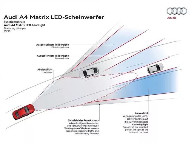 光有好看的皮囊还不够,奥迪A4L还有着同级别最为复杂的灯光技术,追求前卫科技的奥迪,把一系列黑科技用在了A4L上。“闪电”造型的矩阵式大灯将LED远光灯划分为单个矩阵块,结合车头的摄像头与各种传感器,每个矩阵块都可以根据需要进行独立控制,以实现动态遮蔽效果。业内首创的动态流水式转向灯也是足够吸引眼球。