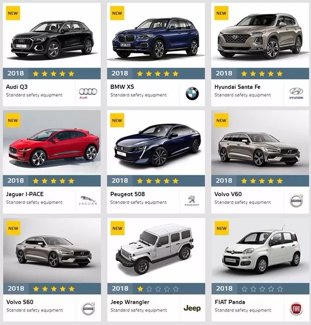 近日,欧洲Euro-NCAP公布了最新一期的碰撞测试成绩。本期参与碰撞测试的车型共有9款,包括全新宝马X5、奥迪全新Q3、现代全新胜达、捷豹I-PACE、标致全新508、沃尔沃全新S60/V60、Jeep全新牧马人和菲亚特Panda。