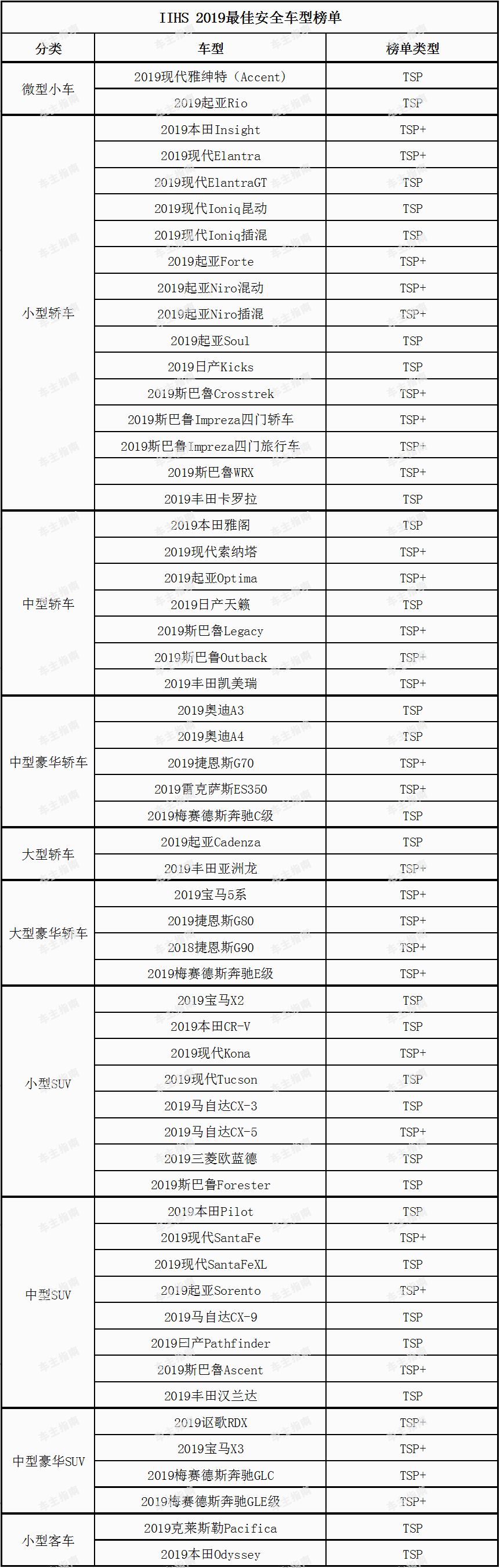 日前,美国公路安全保险协会(IIHS)公布了2019年最佳安全车型榜,虽然筛选标准提高了,但是进入榜单的车型数却实现了翻倍。其中30款车获得了Top Safety Pick+评级称号。另外还有27款车型获得2019 Top Safety Pick称号,总共有57款车型入围。