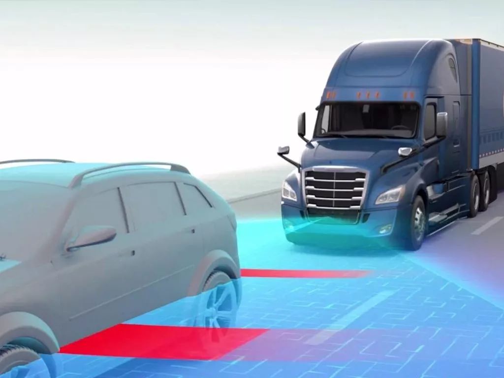 新福莱纳Cascadia搭载的新系统Detroit Assurance 5.0能够分别对制动、加速及转向功能进行独立控制,通过整合雷达及摄像头采集的信息,能够在全车速范围内进行主动横向驾驶控制或纵向/横向综合驾驶控制。