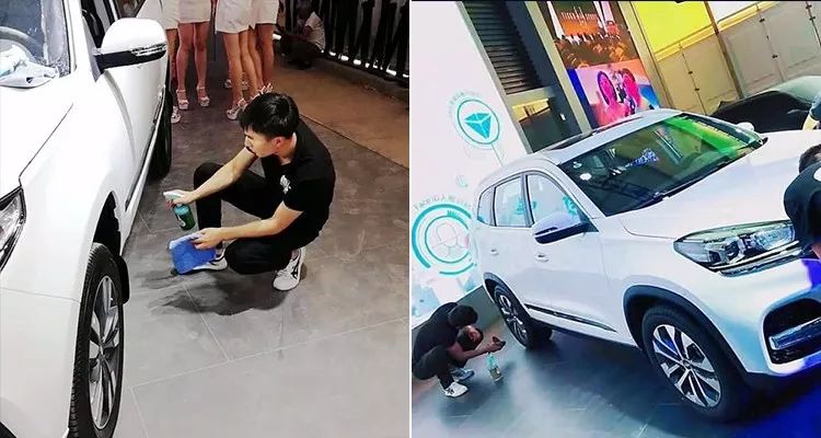 来检验无水洗车液的效果