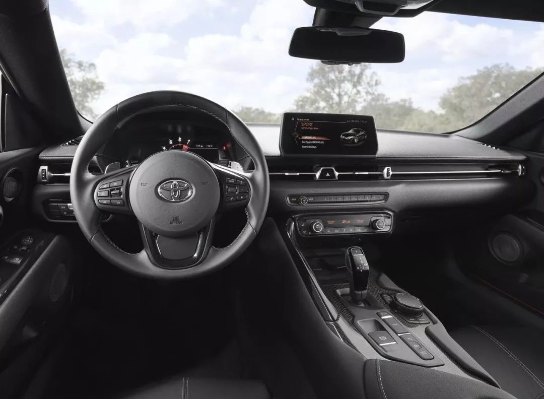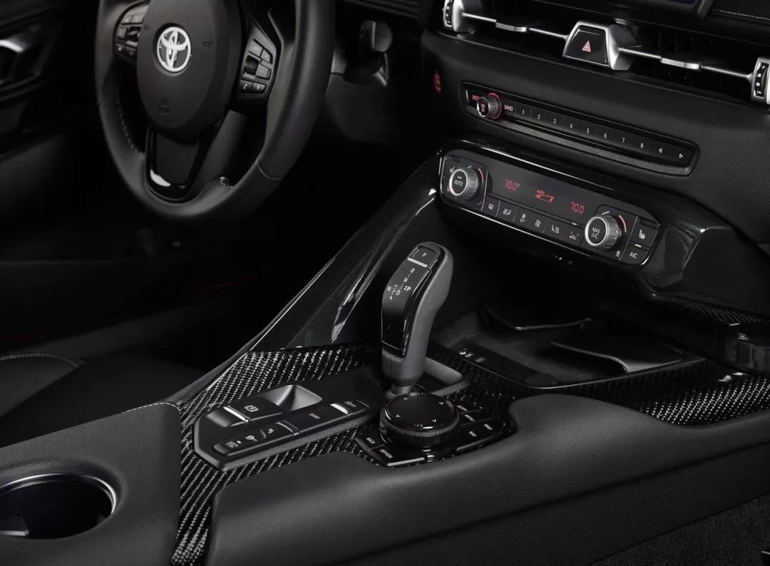 内饰方面,和宝马Z4共用平台的效果显现出来了,不过通过细节的改变这种相似也被巧妙的“掩盖”。全新丰田Supra中控台整体设计较为简洁,设计并不花哨的中控区域主要以功能性为主,整体偏向宝马的设计风格。