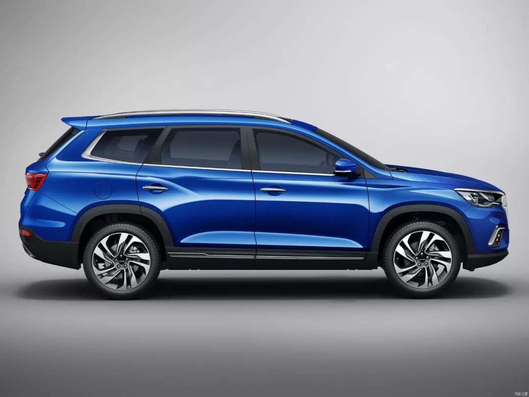 侧面来看,其车身侧面的线条较为丰富,侧窗边框及黑色包围等处嵌入了镀铬饰条,搭配银色车顶行李架和20英寸轮圈,看上去更显精致。此外,新车还配备了全景天窗。车身尺寸上,该车的长宽高分别为4840/1925/1745mm,轴距为2850mm。