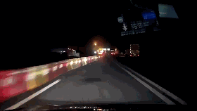 ▲图中视频车辆夜晚在高速上行驶,因驾驶员犯困,撞向中间的塑料隔离带,幸好没造成人员伤亡。