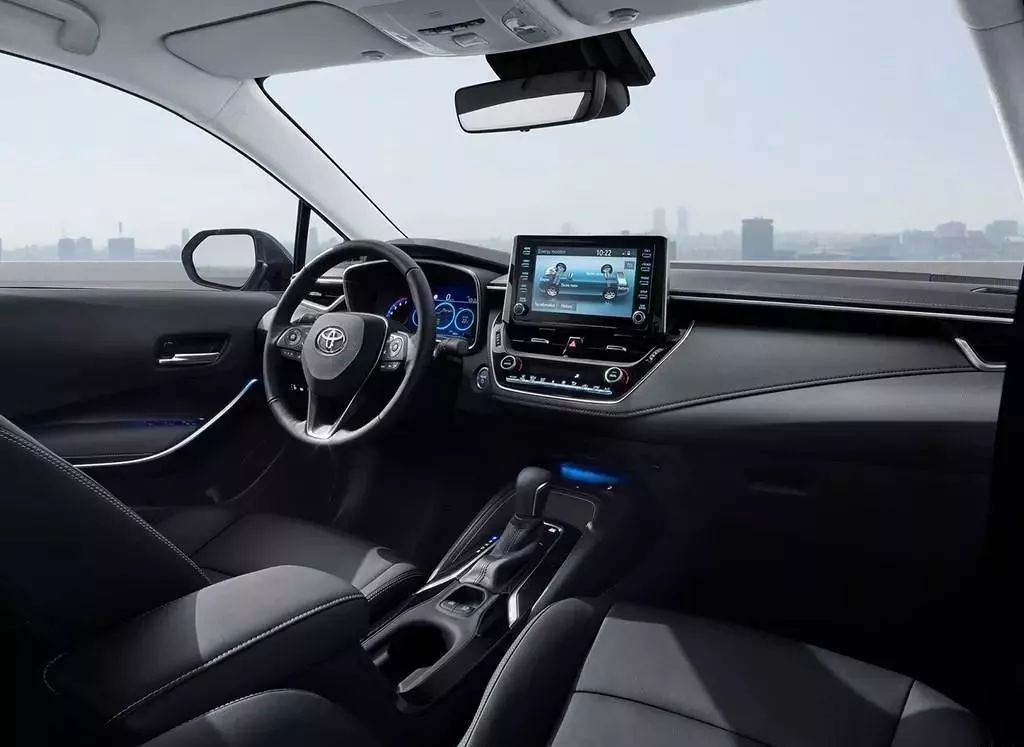 新车在内饰设计上与卡罗拉双擎基本没有差异,简洁大方,一块8英寸悬浮式中控屏尤为抢眼。方向盘、仪表盘样式也为当前时期丰田的设计风格,新的方向盘相比现款更具运动时尚味道。