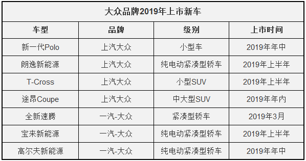 大众2019年上市新车:速腾、POLO换代,纯电动车登场