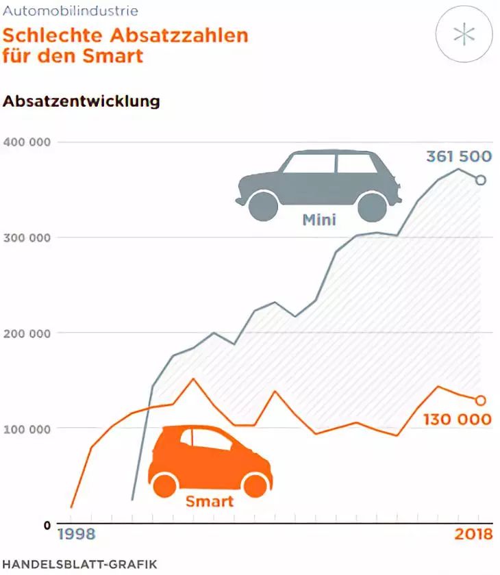 Smart作为世界闻名的微型车品牌,大家提起城市代步微型车,总是第一时间想起它,但是Smart总体销量一直不愠不火,导致品牌每年亏损近700万欧元,戴姆勒集团也在审视是否该放弃这个品牌,集团高管也曾表示将会在今年年内决定Smart的去留。毕竟与Smart定位相似,而且价格贵得多的宝马集团旗下的Mini,在去年的销量足足是Smart的三倍,换作是谁也不好受啊。