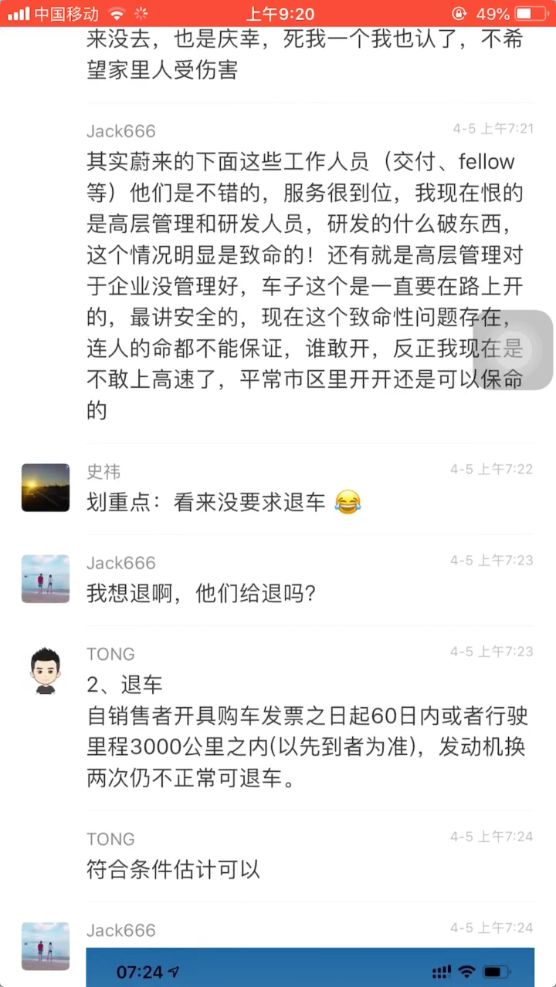 车主更是表示,以后再也不敢开这台车上高速了,并表达了退车的意愿。