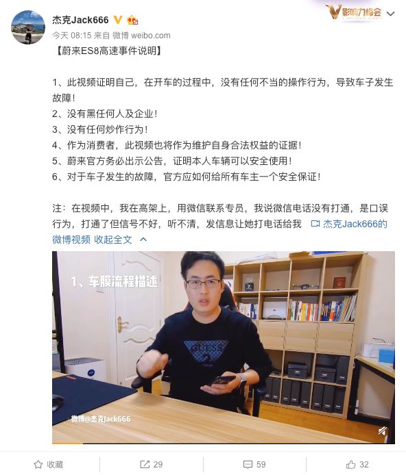 之后,车主也发表了一段视频,表示自己并无任何不当操作,也不存在抹黑品牌与企业的行为,希望蔚来官方能公示这份报告,证明车子的确可以正常使用。