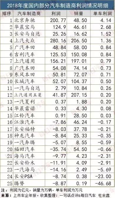 近日,有媒体根据车厂的年报以及年销量,整理出了2018年各大厂商的单车利润,这份榜单可谓是亮点多多!