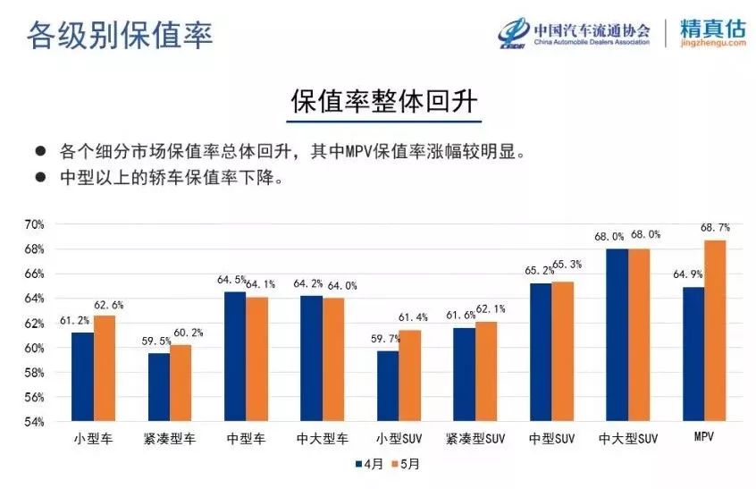 而由于豪华品牌的价格不断下探,中型轿车与中大型轿车的保值率也受到了影响,出现了一定程度的下跌。