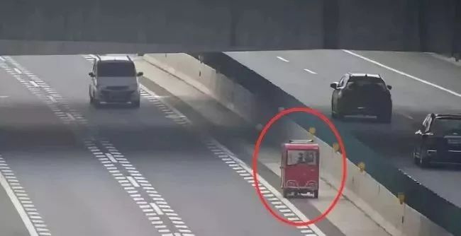 最近,在S5沪嘉高速市区往嘉定方向,有人就看到一位老人,骑着一辆四轮代步车在应急车道内缓慢前行,后方车辆纷纷刹车避让,险象环生。