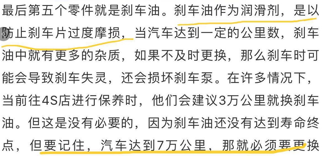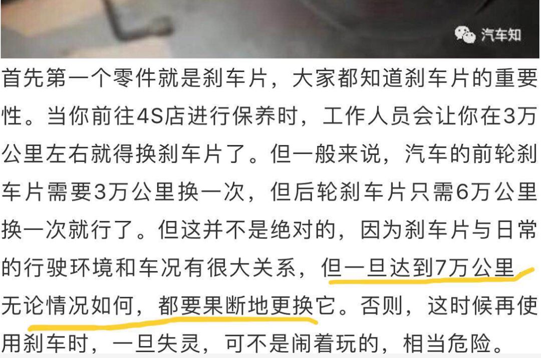 文章中提到的第一个零件是刹车片,确实是性命相关的零部件,刹车片也的确需要及时更换,而且人家内容紧密呼应标题,7万公里无论如何都要换!