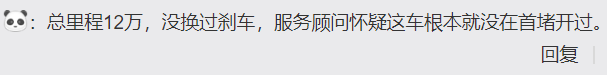 看到这里大厨不禁想到了自己的车,十二万公里了,上次去4S店检查特意请维修工检查了下刹车片还可以继续用,要按照这文章的标准,感情俺从7万到12万公里都是在高危状态啊,这位车友和俺的情况也差不多。