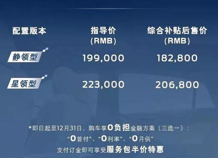在动力方面,领界EV搭载了一台最大功率120Kw的电动机,NEDC工况下续航360km。全系只有两款配置,补贴后售价分别为18.28万与20.68万,除此以外,福特还为买家提供5200-19800元不等的服务包,包含免费保养、免费充电以及车机流量等各项服务。
