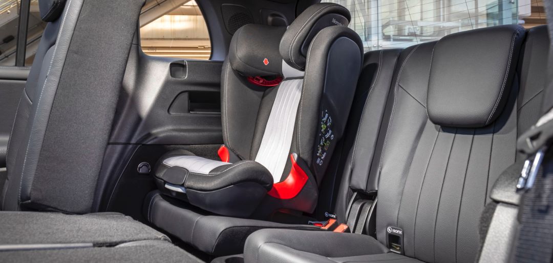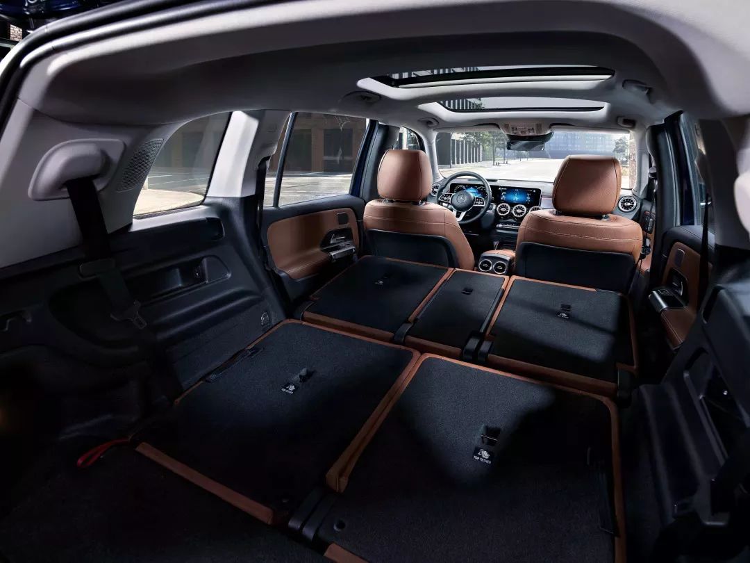 虽然GLB的车身长度只有4638mm,但是轴距却长达2829mm,这也为它布置7个座位营造了客观条件。不过,232的座椅布局以及“紧凑型SUV”的身份也注定了第三排的两个座位只能作应急使用,好在这两个“友尽位”提供了完整的ISOFIX以及Top-Tether两种儿童座椅接口。