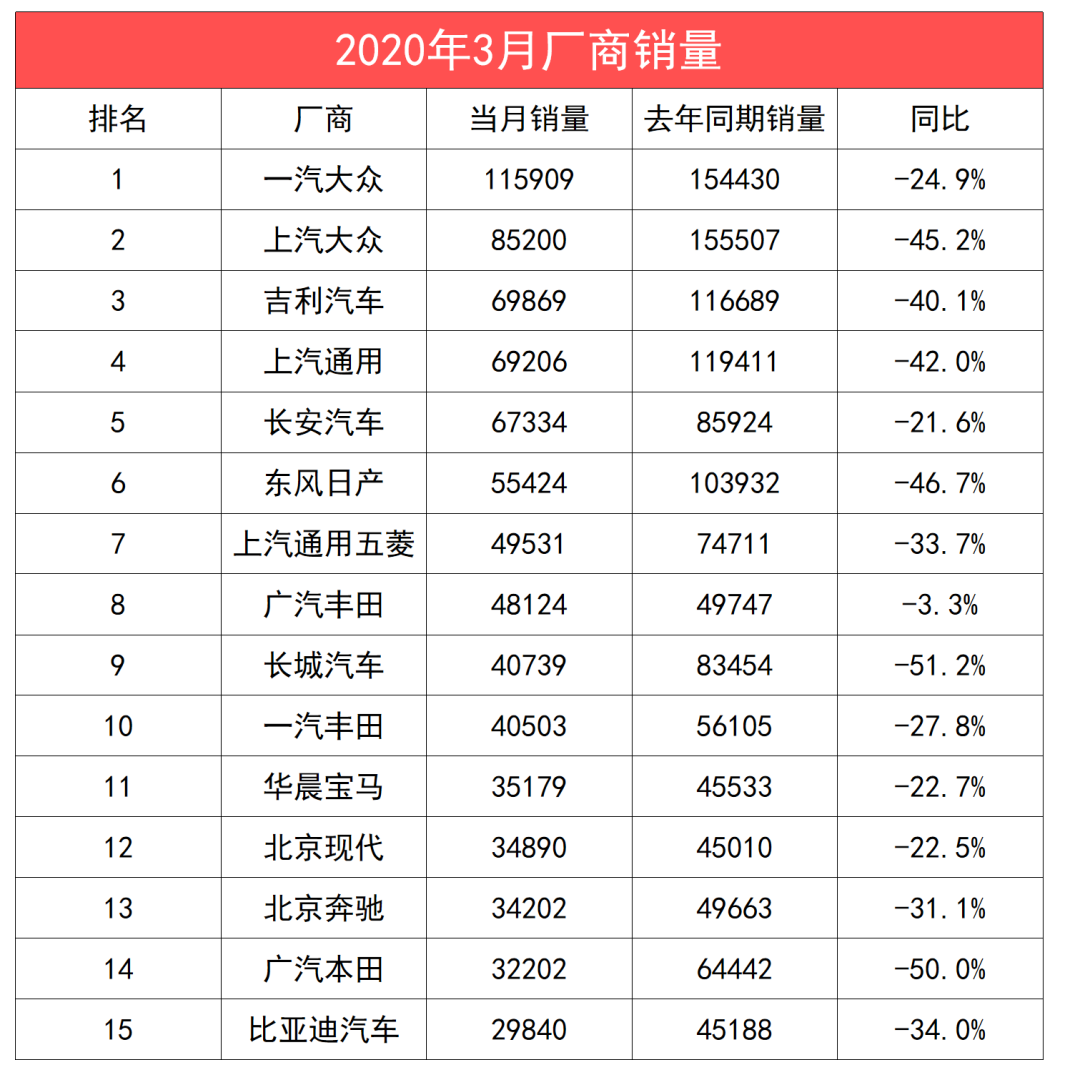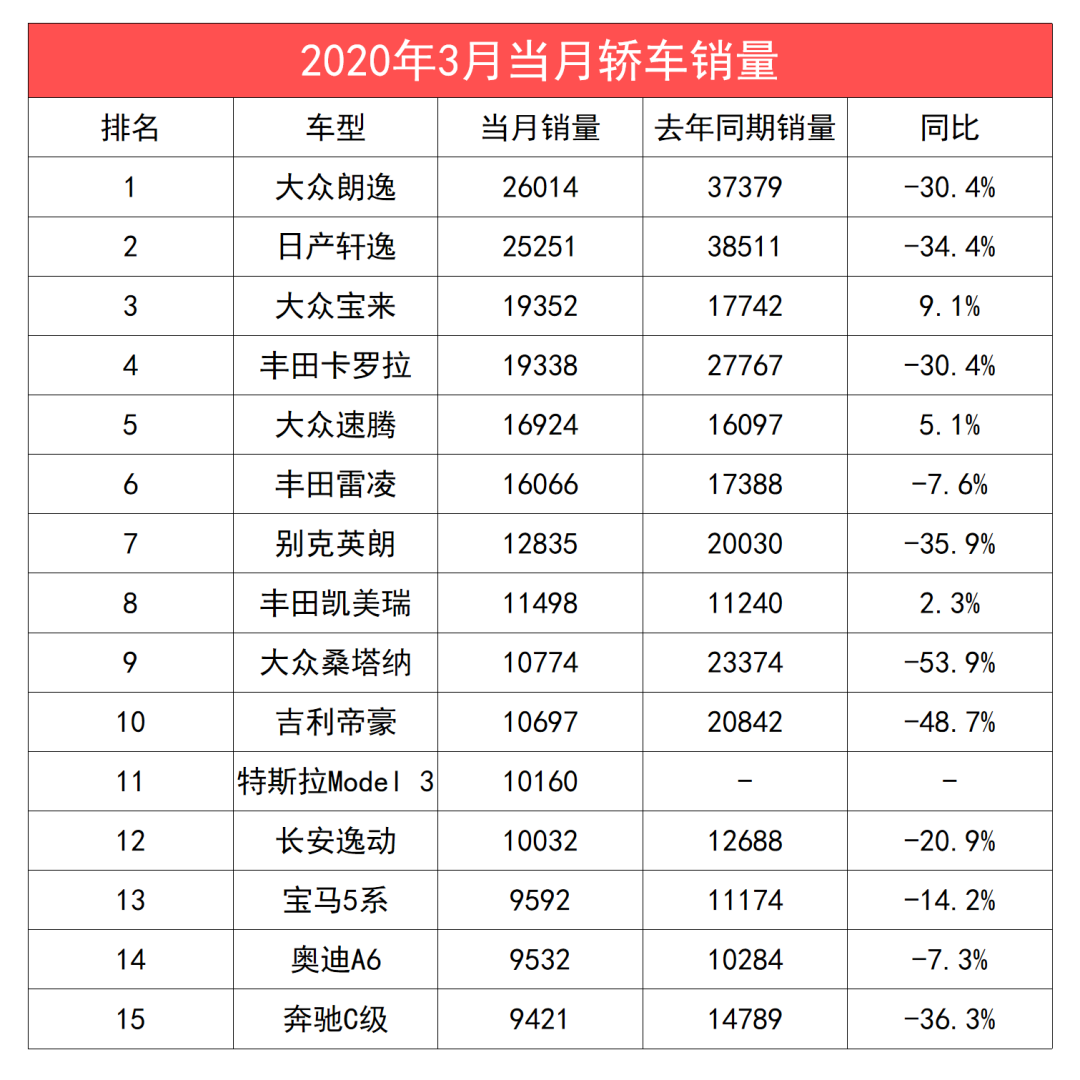 三月车市销量出炉,大众还是王者,吉利反超通用!