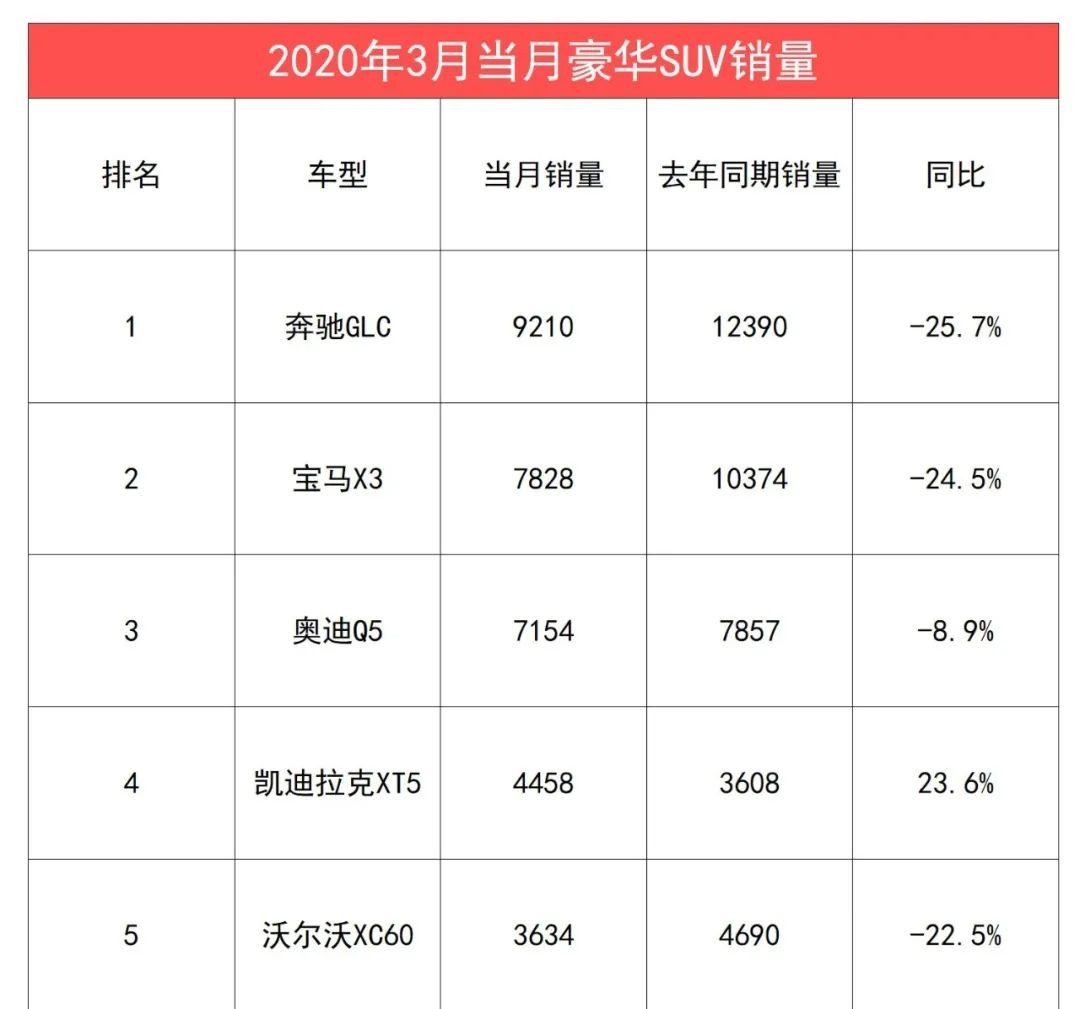 豪华品牌的车型销量排名倒是变化不大,宝马5系占据豪华车榜单第二名的位置(但这只是根据乘联会的评估标准,以售价在30万元起跳的车型来定性高端轿车,所以当月销量最高的“高端轿车”为Model 3);奥迪A6、奔驰C级、E级、宝马3系分列3-6位。而豪华品牌SUV榜单中,奔驰GLC和宝马X3、Q5分列前三名,从豪车榜单上看,销量排名并不意外而且几乎热销的车型都是老面孔。