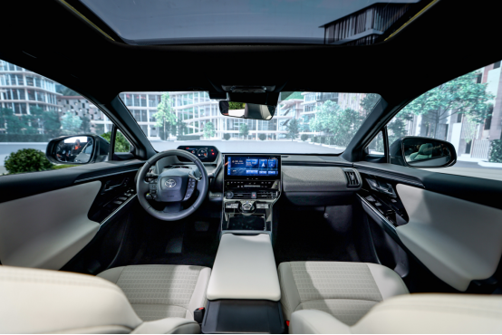 一汽丰田bZ4X的高效太阳能充电穹顶从大自然汲取能量,所转化的电量每年可为车辆增加约1750km续航里程。此外,一汽丰田bZ4X的智享座舱,轻松实现人机交互。“你好,一汽丰田”智能语音交互系统、人脸识别功能、丰田智行互联、数字钥匙等配置,让用户乐享高效、便捷的智能科技。