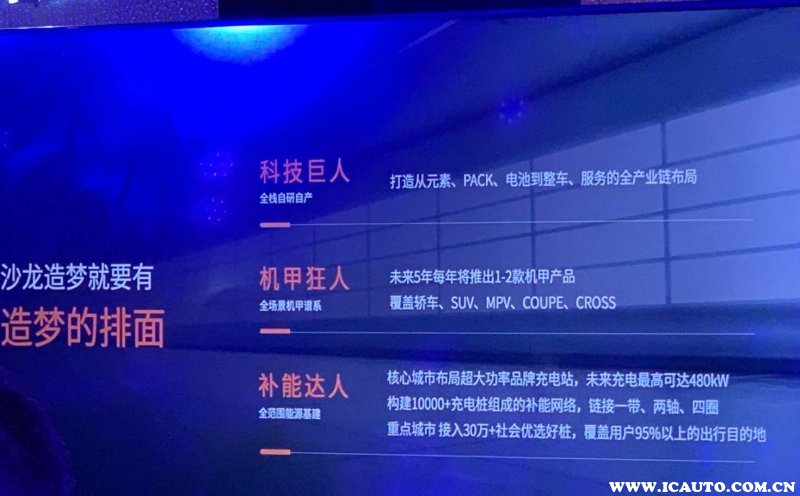 根据官方介绍,沙龙接下来的5年内,每年会推出1-2款机甲产品,涵盖轿车、SUV、MPV、COUPE、CROSS。同时还会打造从元素、PACK、电池到整车、服务的全产业链布局。此外还会在核心城市布局超大功率品牌充电站,未来充电最高可达480kW;构建10000+充电桩组成的不能网络,链接一带、两轴、四圈;重点城市接入30万+社会优选好桩,覆盖用户95%以上的出行目的地。