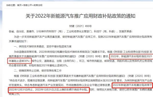 2022新能源补贴下降执行时间
