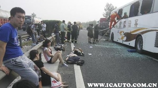 而大客车当时属于满员行驶(47人),本想拐到第一车道避让货车,但是由于速度过高避让不急,导致客车前面撞击严重,插入货车后部一米多深。
