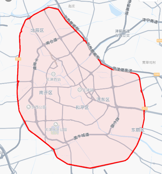 天津市: 外环线(不含)以内道路