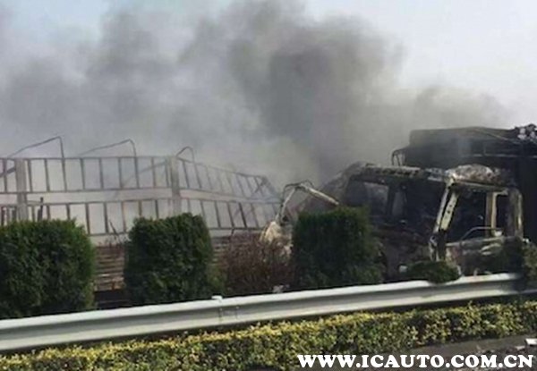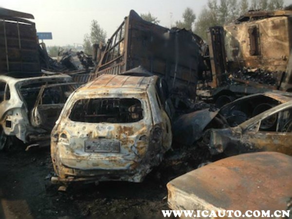 我们可以从宁洛高速事故现场传来的照片可以知道,路面有湿滑迹象,多辆车由于制动不及时而撞上,由于大货车驾驶室被挤压变形,撞击后引起火花引燃车辆,部分汽车只烧剩车架。