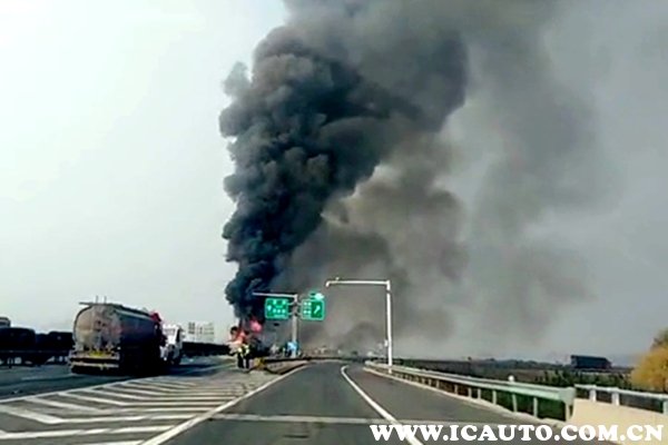 从了解到的最新消息得知,两个车祸起火点相隔较近,其中一处起火点火势较猛,冒出浓浓黑烟,数十辆车被堵在后方,现场一片混乱。