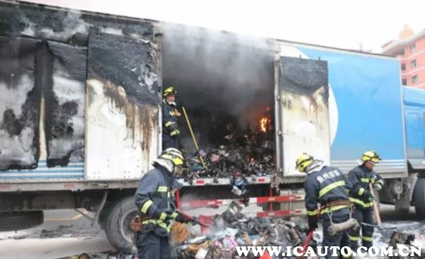 此次事故的主要原因:当日傍晚2名司乘人员准备卸货,当打开车厢门后,发现车厢內的包裹有起火冒烟,可能是包裹内的商品短路所致,随即用车载灭火器进行扑救,但无法扑灭,只能报警求助。