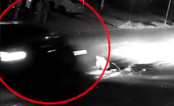 第一位肇事者离开后,卧在地上的老人再次遭到第二次撞击,第二个肇事者再次驾车逃离现场。