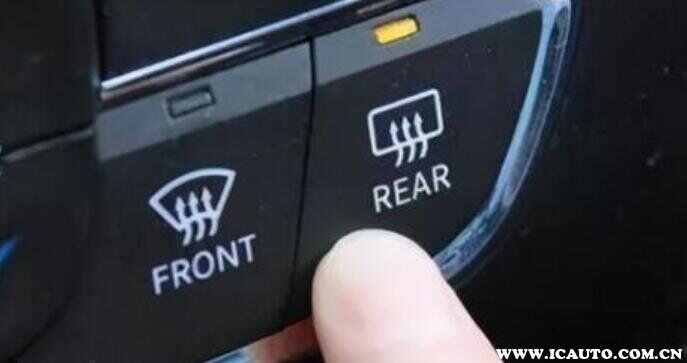 2、车上三个波浪箭头向上,如果按键是长方形的,同时带有三根向上的箭头,这个就是代表后风挡玻璃除雾按键,用字母rear表示。按下这个键之后,后风挡的加热电阻丝就会开始进行加热。如果在寒冷的冬季,车主发现后风挡的位置有雪覆盖,此时就能利用这个功能把积雪除掉。