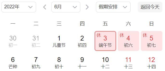端午节 6月3日至5日放假,共3天。