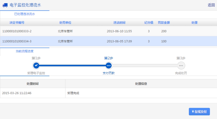 通过交通综合服务管理平台网上处理违章的流程