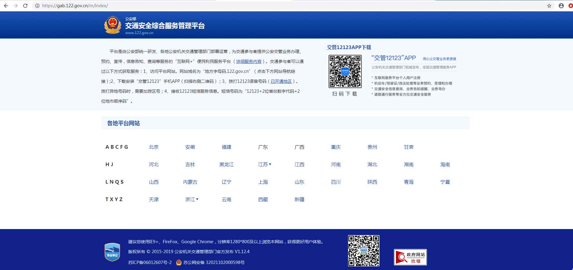 1、在浏览器输入平台的网址www.122.gov.cn。推荐使用IE9+、Firefox、Google Chrome等浏览器。